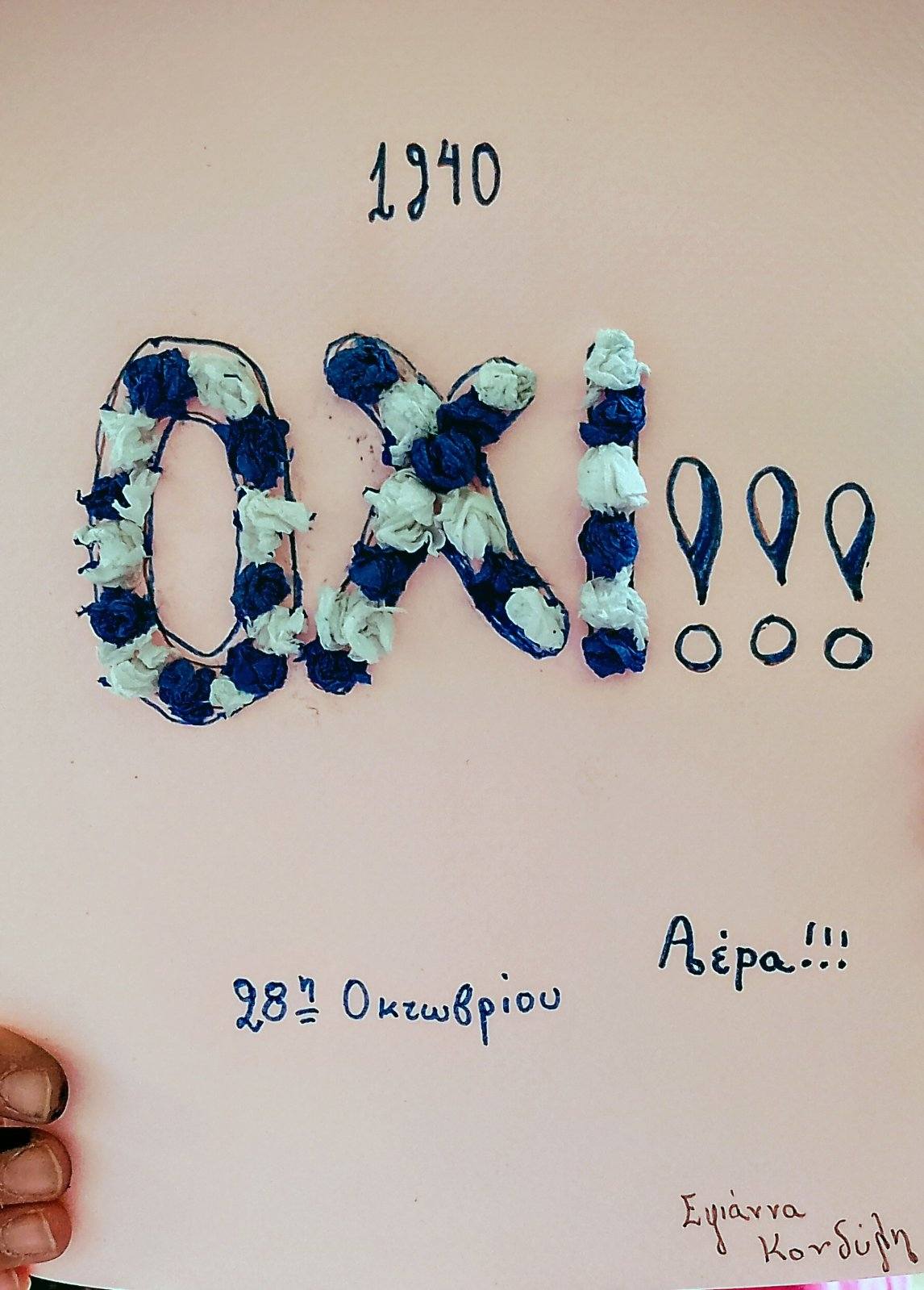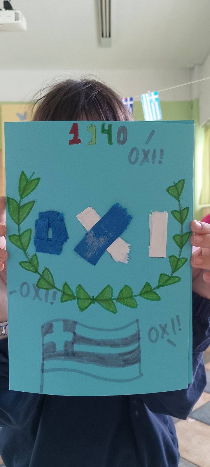 Τα παιδιά της Δ' τάξης έφτιαξαν όμορφες κάρτες, αφιερωμένες στο ηρωικό ΟΧΙ και τη σθεναρή αντίσταση των Ελλήνων απέναντι στον στρατό του Μουσολίνι!! Χρόνια πολλά Ελλάδα!!